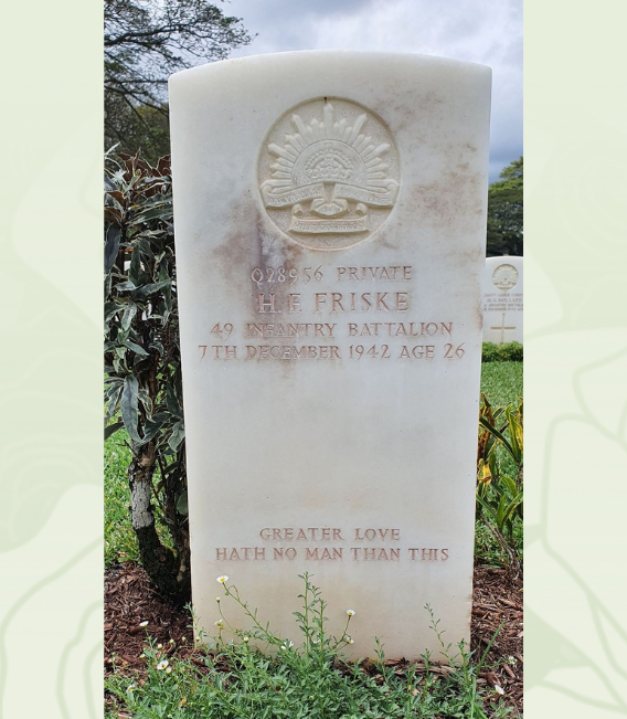 Henry Francis Friske was born on the 2nd of December 1916 in Gympie Queensland, to Mr Henery Otto and Mrs Eliza Frances Friske (nee Fittell) as the youngest of their 6 children. His older siblings (from eldest to youngest) were Evelyn, George, Herbert, Frank and Grace. The family is from the rural suburb of Lagoon Pocket which lies just south of Gympie and Henry seems to have grown up there. Prior to his enlistment in the 49th Battalion, Australian Milita Force, Henry was living in Coomera where he worked as a farm labourer.